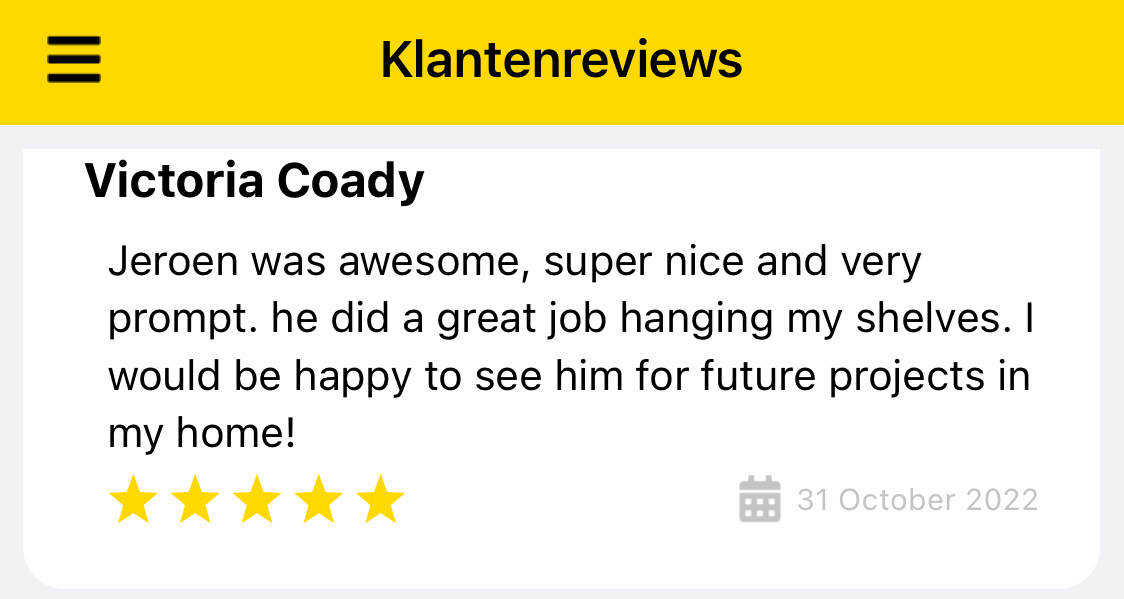 Leaking tap? Hang your paintings? Assembling Ikea furniture? Place a television bracket? Painting? Or other small jobs in your home or office that you gladly hand over to a professional with experience and the right equipment? Send me a message.